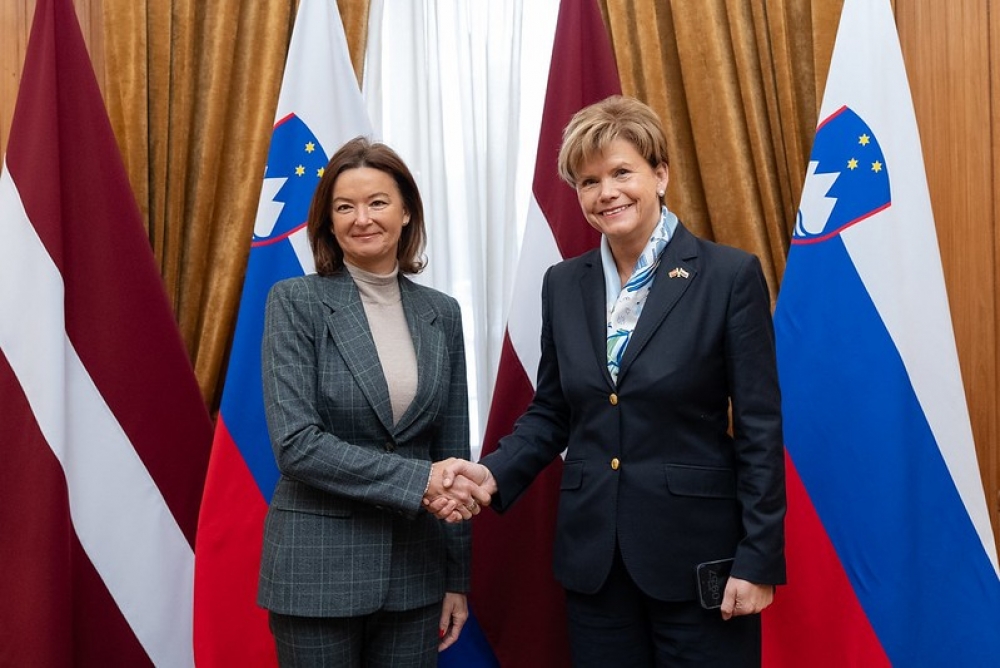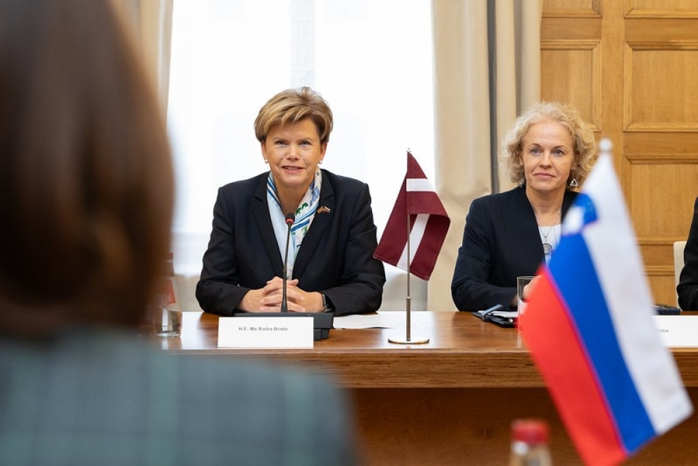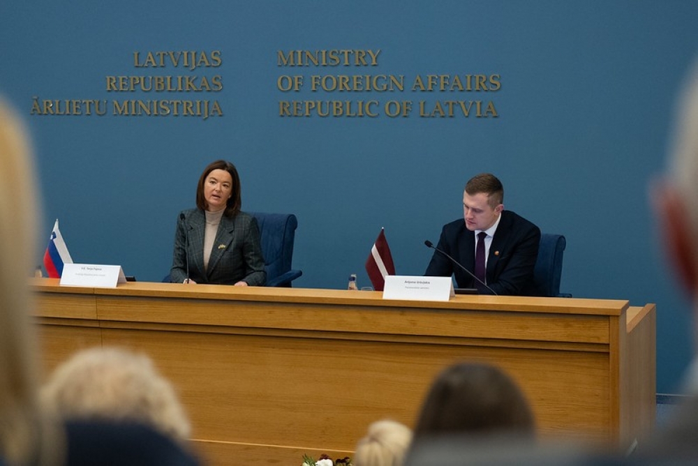 Ārlietu ministre Baiba Braže: “Latvijai un Slovēnijai ir izcilas divpusējās attiecības, kā arī esam cieši sabiedrotie ES un NATO. Esmu gandarīta uzņemt labu draugu un kolēģi Tanju Fajonu nedēļā, kad Latvija atzīmē starptautiskās atzīšanas de iure 150. gadadienu.