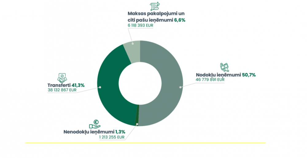Nozīmīgu ieņēmumu daļu veido arī valsts budžeta transferti. Kopumā valsts budžeta mērķdotācijas un dotācijas 2026. gadā plānotas 38 132 867 eiro apmērā, kas veido 41,3% no kopējiem ieņēmumiem. No tiem 24 967 613 eiro paredzēti pedagogu darba samaksai, skolēnu ēdināšanai, interešu izglītībai, pašvaldību ceļu un ielu uzturēšanai, kā arī citu valsts deleģēto funkciju nodrošināšanai. Autoceļu fonda līdzekļi plānoti sabalansēti, paredzot 70% ikdienas uzturēšanas darbiem un 30% ielu un ceļu sakārtošanai un uzturēšanai, vienlaikus nodrošinot līdzfinansējumu ne tikai uzturēšanai, bet arī piecpadsmit ceļu infrastruktūras izbūves projektiem. Pedagogu atlīdzības finansējums nodrošināts visam gadam, nevis astoņiem mēnešiem kā iepriekš.