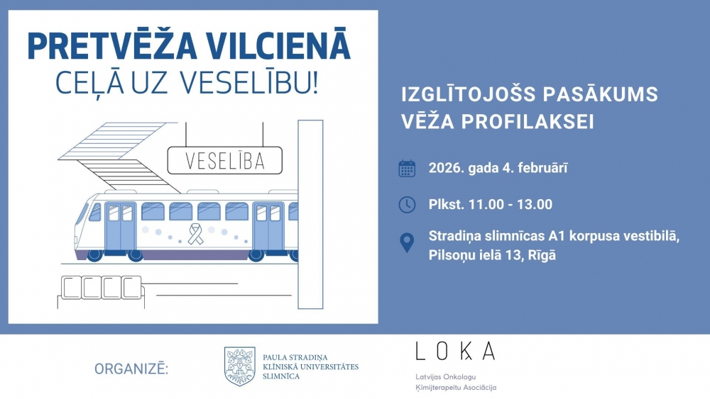 “Šogad Pasaules vēža dienā vēlamies atgādināt, ka daļa onkoloģisku slimību ir novēršanas vai atklājamas agrīni. Ar pasākumu “Pretvēža vilcienā – ceļā uz veselību” mēs vēlamies sabiedrībai saprotamā un praktiskā veidā parādīt, ka profilakse sākas ar ikdienas izvēlēm – uzturu, kustību, atteikšanos no kaitīgiem ieradumiem un regulārām pārbaudēm. Jo agrāk rīkojamies, jo lielākas ir iespējas saglabāt veselību,” uzsver Stradiņa slimnīcas Onkoloģijas klīnikas vadītāja dr. Aija Geriņa.