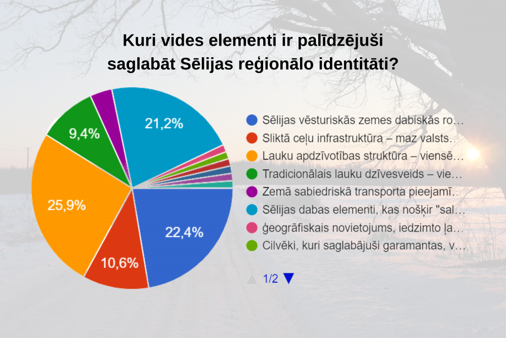 Ceturtā daļa jeb 26,7% šo dzīvošanu “salās” minējuši arī kā galveno elementu, kas palīdzējis saglabāt Sēlijas reģionālo identitāti. Tam pievienojas 20,9% atbilžu, norādot, ka identitāti ļāvusi saglabāt pati Sēlijas daba – meži, purvi, pauguri un applūstošas pļavas, kas dzīvošanai un lauksaimniecībai derīgo zemi sadala nelielās “salās”. Savukārt 22,1% min, ka Sēlijas vēsturiskās zemes dabiskās robežas – Daugava, Taurkalnes mežu masīvs, robeža ar Baltkrieviju un Lietuvu – ir tās, kas ļāvušas noturēties novada savpatībai.