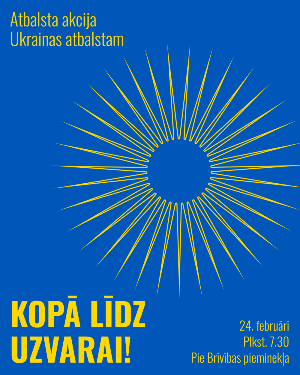 “Jau ceturto gadu saule aust kara plosītā Ukrainā. Šis ir haotisks laiks, kad ierastā pasaules kārtība plaisā. Vēji pūš no visām pusēm, jauc virzienu, nogurdina soli, ir viegli apjukt un nogurt. Taču brīvība nekad nav bijusi pašsaprotama. Tā vienmēr ir prasījusi skaidru nostāju. Tāpēc aicinām 24. februārī plkst. 7.30 līdz 8.00 pulcēties pie Brīvības pieminekļa Rīgā, lai līdz ar saullēktu paustu atbalstu Ukrainas tautai, kas jau četrus gadus cīnās ne tikai par savu, bet arī par mūsu brīvību,” vēstīts atbalsta akcijas uzsaukumā mājaslapā kopalidzuzvarai.lv.