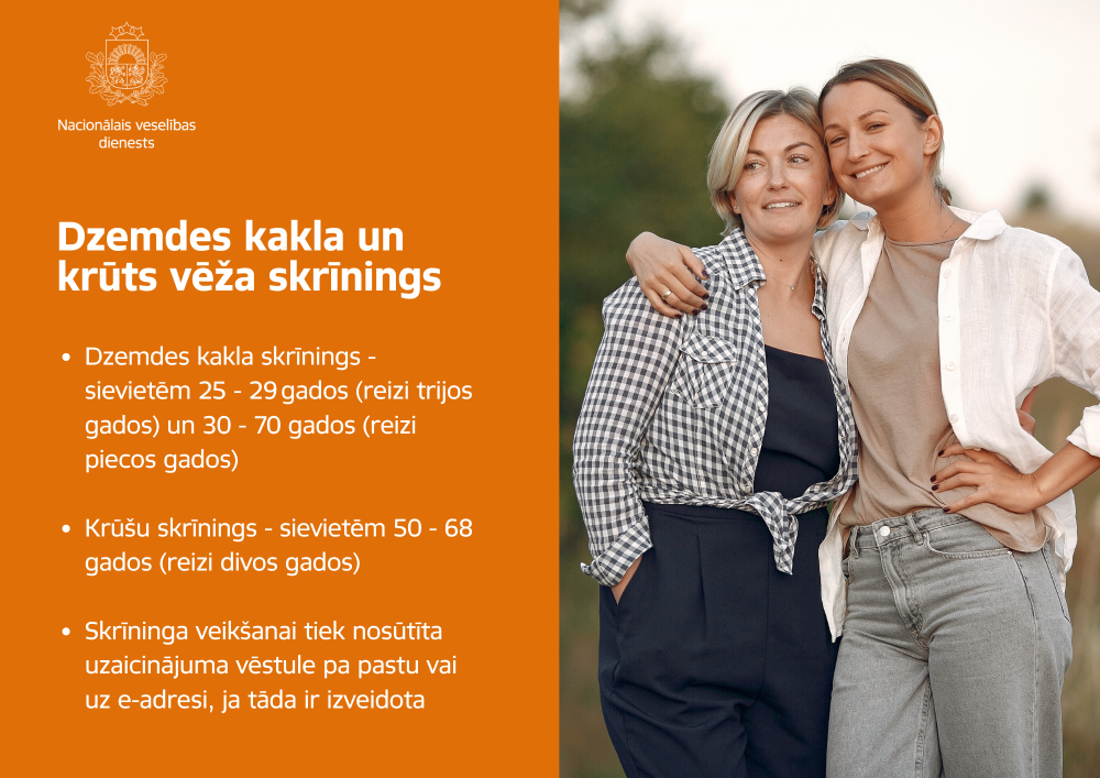 Dzemdes kakla un krūts vēža skrīninga veikšanai sievietēm noteiktos vecumos tiek nosūtītas uzaicinājuma vēstules, kas kalpo kā nosūtījums. Saņemot vēstuli, jāveic pieraksts kādā no piedāvātajām ārstniecības iestādēm. Ārsta apmeklējums un profilaktiskā pārbaude ir pilnībā valsts apmaksātas, izvēloties ārstniecības iestādi, kurai ir noslēgts līgums ar NVD.
