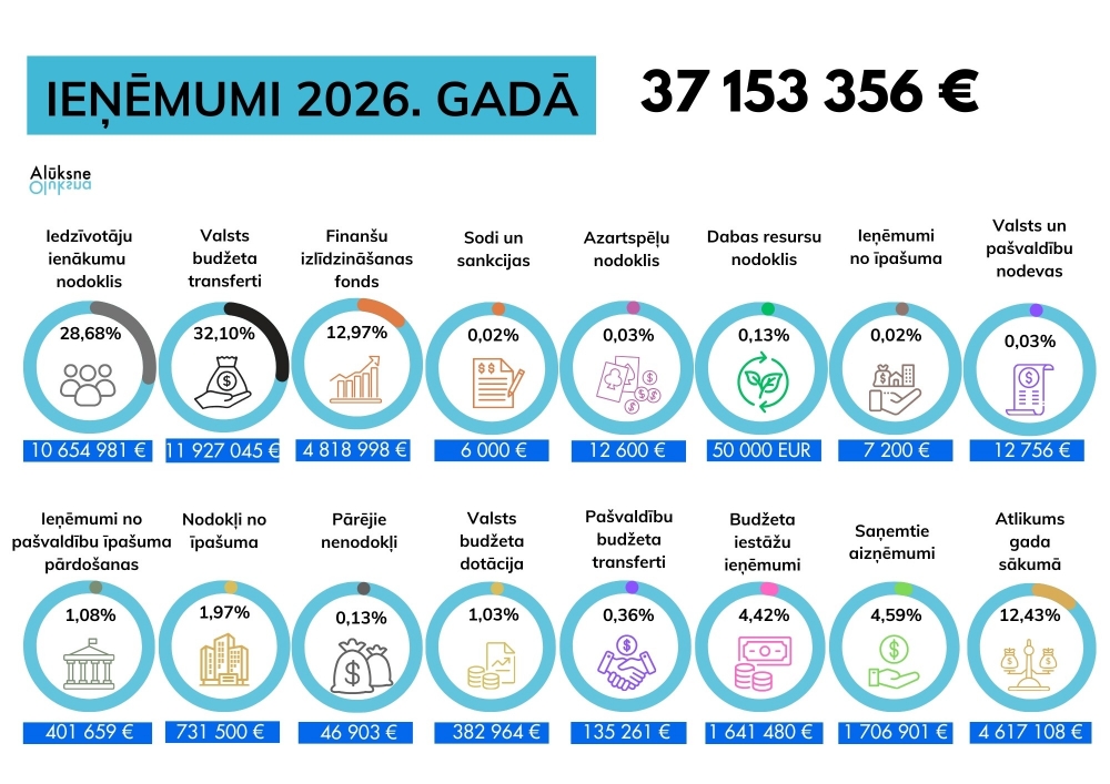 Plašāka informācija par Alūksnes novada pašvaldības 2026. gada budžetu – www.aluksne.lv.