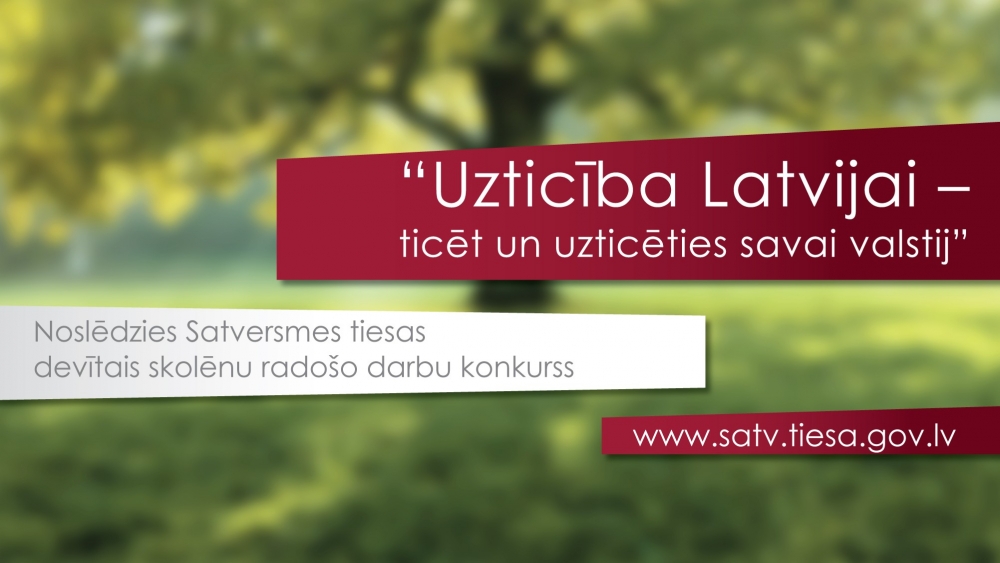 “Satversmes tiesa izsaka pateicību visiem skolēniem par radošo līdzdalību, centību un ieguldīto darbu konkursā. Īpaša pateicība pedagogiem un vecākiem par iedvesmu un atbalstu, kas palīdz jauniešiem augt, domāt un ticēt saviem spēkiem. Ļoti novērtējam skolēnu radošumu, konkursa darbos atklājot, kā ikviens ar savām domām, idejām, ticību un darbiem var stiprināt uzticību mūsu Latvijai,” uzsver Satversmes tiesas priekšsēdētāja Irēna Kucina.
