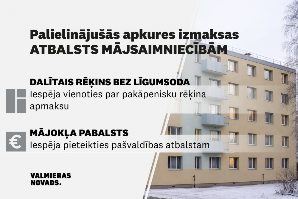 Tāpēc 2026. gada 3. februārī Valmieras novada pašvaldības domes vadības un pašvaldības kapitālsabiedrību sanāksmē lemts atbalstīt iedzīvotājus, kuriem var rasties grūtības savlaicīgi norēķināties par saņemtajiem komunālajiem pakalpojumiem, aicinot vienoties par apmaksas grafiku, lai šai mājsaimniecībai netiktu piemērots līgumsods.