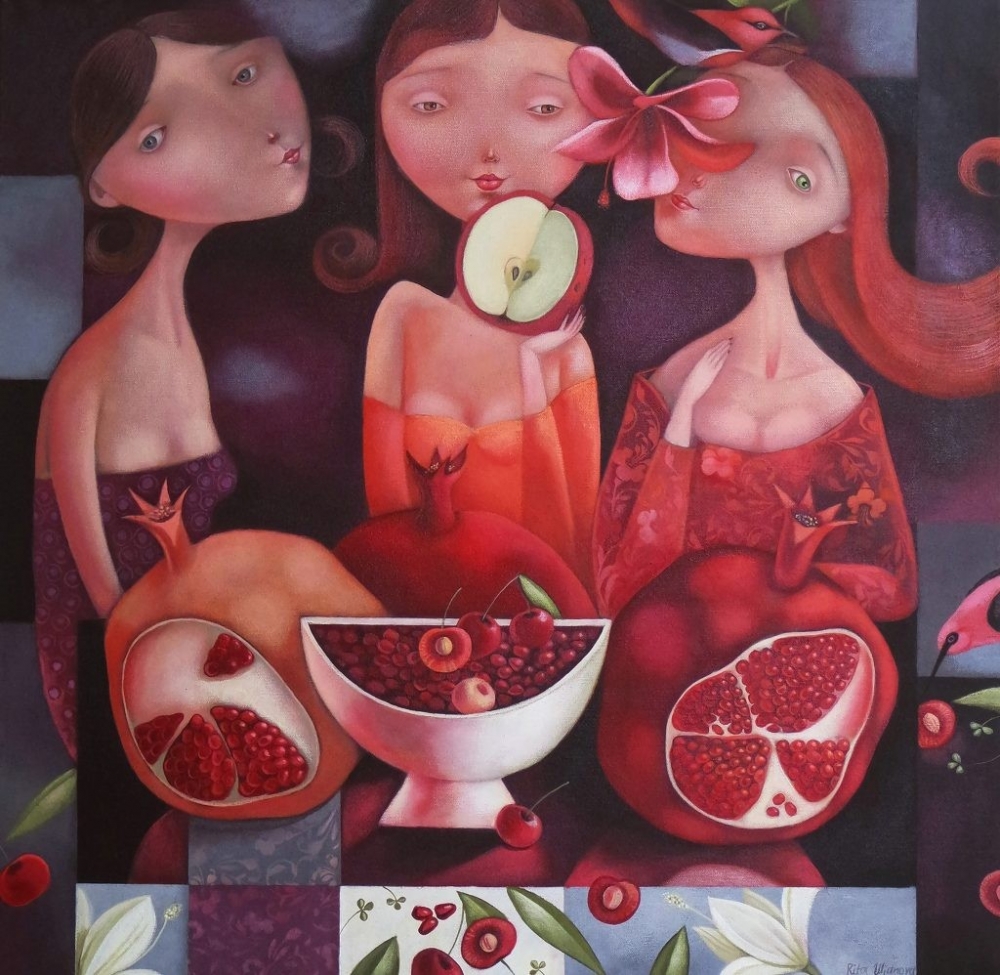 Izstāde ir kā ceļojums mākslinieces radošajā attīstībā, iedvesmu rodot apkārtējā pasaulē un dabā. Māksliniece glezno ziedus, putnus, klusās dabas, bet visvairāk viņu piesaista meiteņu tēli. Šīs meitenes – priecīgas vai melanholiskas, mātes vai meitas, pasaules glābējas vai vienkārši tautas meitas – pavada mākslinieci jau daudzus gadus. Darbos valda liriski harmoniskas noskaņas, kur reālais saplūst ar fantāziju – dabas motīvi savijas ar figurālām kompozīcijām, ziedi sapinas ar putnu spārniem.