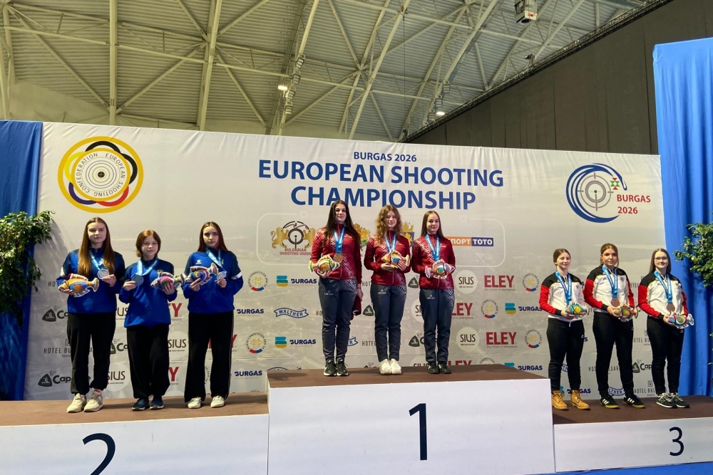 Latvijas juniores Kristiāna Agule, Līva Krūmiņa un Alise Dvarišķe izcīnīja zelta medaļas šaušanā ar pneimatiskajām pistolēm komandu vērtējumā. Visas sportistes šodien rādīja stabilu sniegumu, attiecīgi komandas rezultātā ieguldot individuāli sašautos 566, 563 un 560 punktus. 14 komandu konkurencē sudrabu izcīnīja Ukrainas jaunās sportistes, bet bronza Vācijas komandai.
