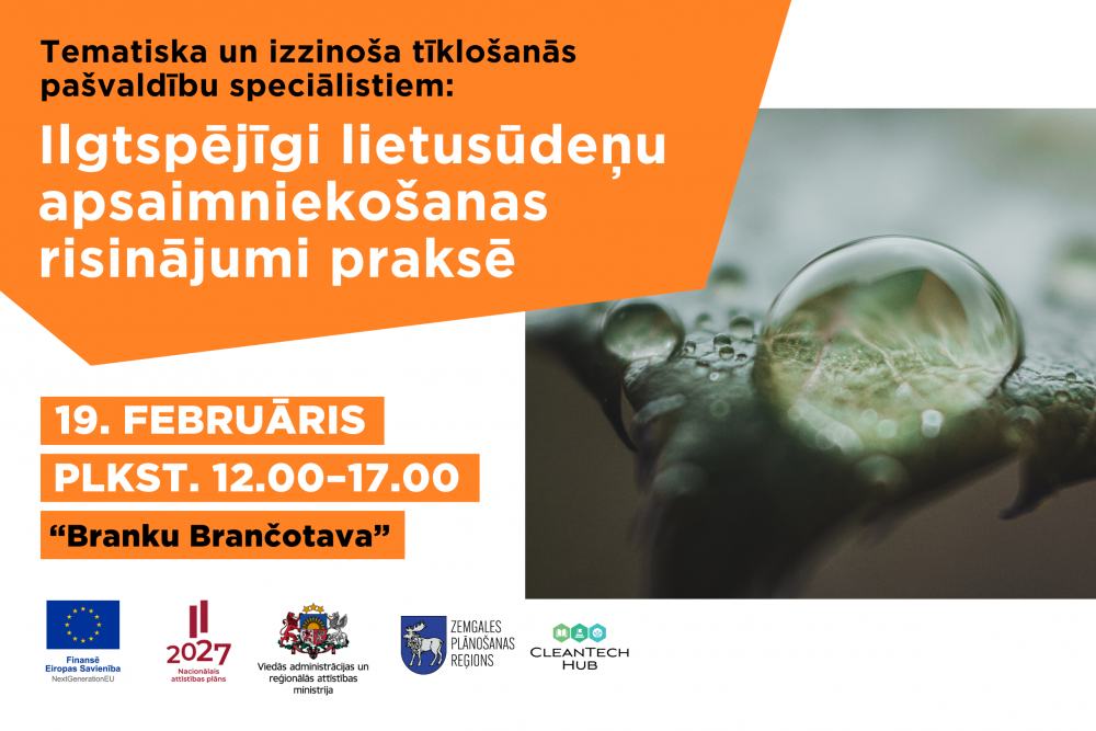 Lietusūdeņu apsaimniekošana pašvaldībās ir cieši saistīta gan ar pilsētvides kvalitāti, gan ar pielāgošanos klimata pārmaiņām un resursu efektīvu izmantošanu. Pasākuma laikā dalībniekiem būs iespēja ne tikai uzklausīt ekspertu prezentācijas, bet arī aktīvi iesaistīties diskusijās, dalīties pieredzē un saņemt individuālas konsultācijas par savu projektu idejām.