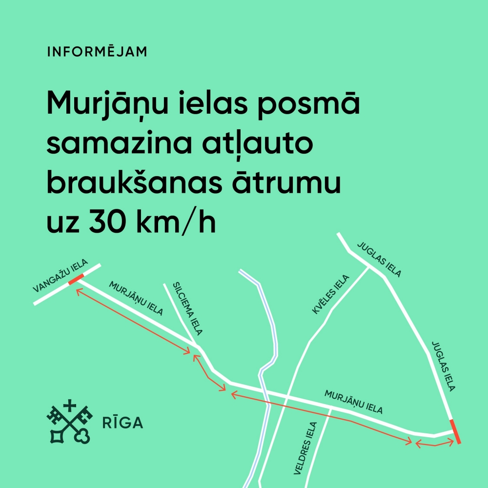 Savukārt, izmaiņas Murjāņu ielas posmā no Tramplīna ielas līdz Juglas ielai saistītas ar nepieciešamību šajā apkaimē paaugstināt gājēju un velobraucēju drošību. Tādēļ arī šajā ielas posmā, sākot no 20. februāra, uz pastāvīgu laiku tiks samazināts maksimālais atļautais braukšanas ātrums līdz 30 km/h. Tuvumā atrodas vairākas izglītības iestādes, kuru dēļ ikdienā ievērojami pieaug bērnu skaits, kas pārvietojas šīs ielas tuvumā. Ātruma samazināšana nodrošinās efektīvu satiksmes mierināšanu, radot paredzamāku, klusāku un drošāku vidi visiem satiksmes dalībniekiem un apkārtējiem iedzīvotājiem.