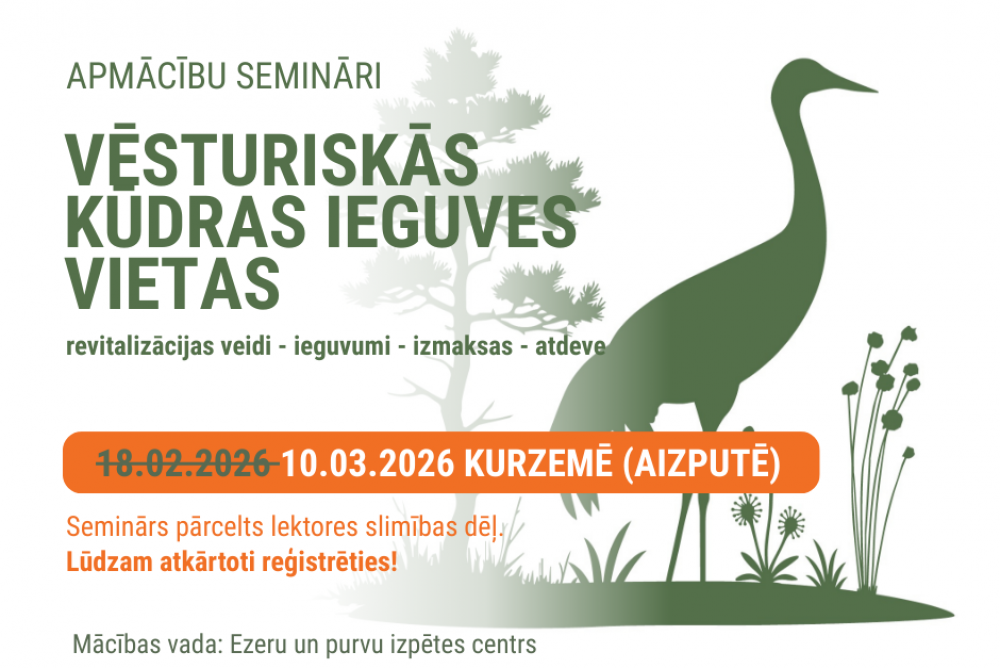 Seminārus organizē Vidzemes plānošanas reģions sadarbībā ar Kurzemes, Zemgales un Latgales plānošanas reģioniem projekta “Atbalsts vēsturisko kūdras ieguves vietu revitalizācijai” ietvaros.