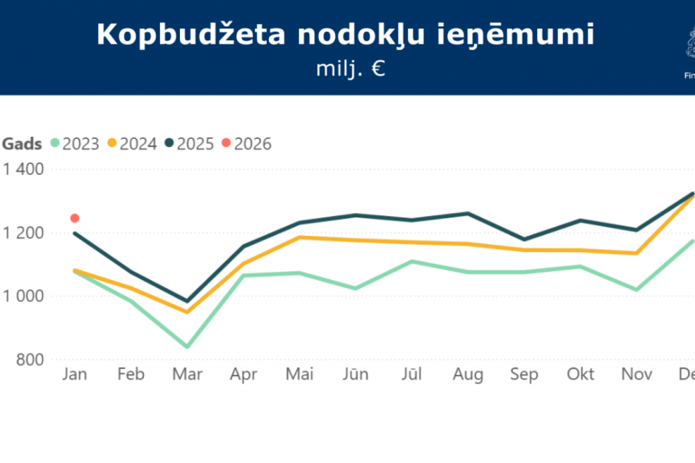 Kopbudžeta ieņēmumi šā gada janvārī 1,5 miljardu eiro apmērā pieauga par 51,4 miljoniem eiro jeb 3,5% salīdzinājumā ar janvāri pērn. Ieņēmumu kāpumu pamatā skaidro par 48 miljoniem eiro jeb 4% lielāki nekā janvārī gadu iepriekš kopbudžeta nodokļu ieņēmumi (ieskaitot atlikumu vienotajā nodokļu kontā), sasniedzot 1,2 miljardus eiro. Kopumā janvāra kopbudžeta nodokļu plāns tika pārpildīts par 18,6 miljoniem eiro un bija 101,4%.