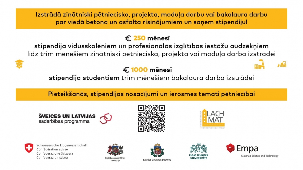Konkurss tiek rīkots Šveices – Latvijas sadarbības programmas «Lietišķā pētniecība» projektā LACHMAT. Tajā RTU pētnieki ciešā sadarbībā ar Šveices Federālo materiālu zinātnes un tehnoloģiju laboratoriju Empa attīsta, pilnveido un tirgum tuvina progresīvus ceļa seguma un būvniecības materiālus un tehnoloģijas.