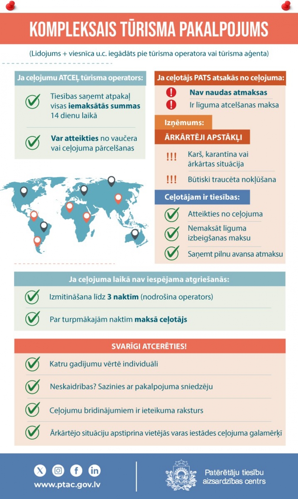 (!) PTAC aicina ceļotājus vispirms sazināties ar konkrēto tūrisma operatoru vai aģentu, no kura ceļojums iegādāts.