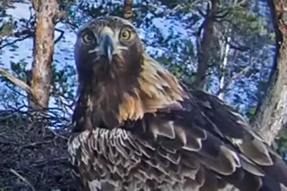 5. marta rītā šogad pirmo reizi AS “Latvijas valsts meži” (LVM) nodrošinātajā tiešraides ligzdā tika novēroti klinšu ērgļi. Ligzdā ielaidās mātīte Spilve un līdz šim neredzēts tēviņš ar gredzeniem.