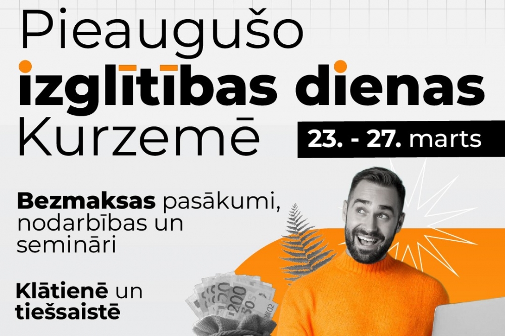 Tiekamies martā “Pieaugušo izglītības dienas Kurzemē 2026” pasākumos!