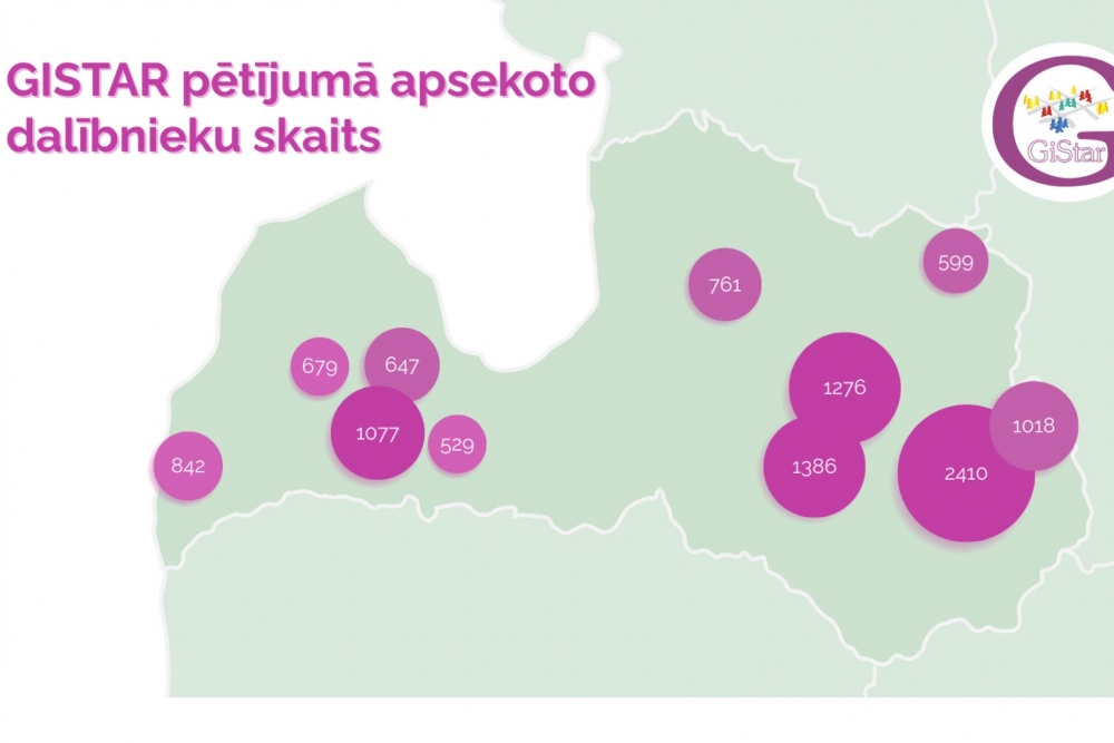 GISTAR pētījuma dalībnieku skaits Latvijas pilsētās: