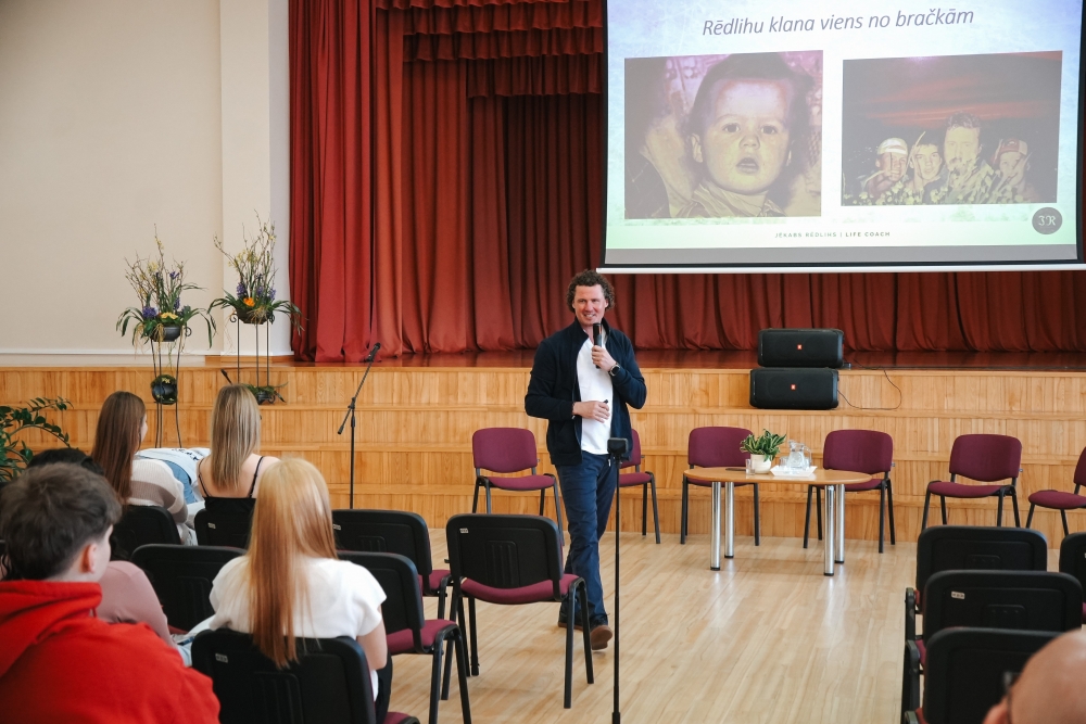 Foruma pirmajā daļā klātesošos uzrunāja bijušais hokejists, pārliecības treneris un mentors Jēkabs Rēdlihs. Viņš savā stāstā uzsvēra, ka pāreja no profesionālā sportista gaitām uz mentora un trenera darbu prasīja ne tikai fizisku disciplīnu, bet arī milzīgu iekšējo darbu ar sevi. Viņš atklāti dalījās pieredzē par to, ka pēc hokejista karjeras beigām nācies saskarties ar identitātes krīzi un neziņu par nākotni, kas licis saprast – mentālā noturība nav iedzimta, tā ir jātrenē ik dienas. Jēkabs iedrošināja jauniešus apzināties, ka kļūdas un neveiksmes ir tikai daļa no procesa, un galvenais ir nevis izvairīties no grūtībām, bet gan iemācīties savaldīt savu "iekšējo kritiķi" un atrast motivāciju rīkoties arī tad, kad pārliecība ir zudusi.