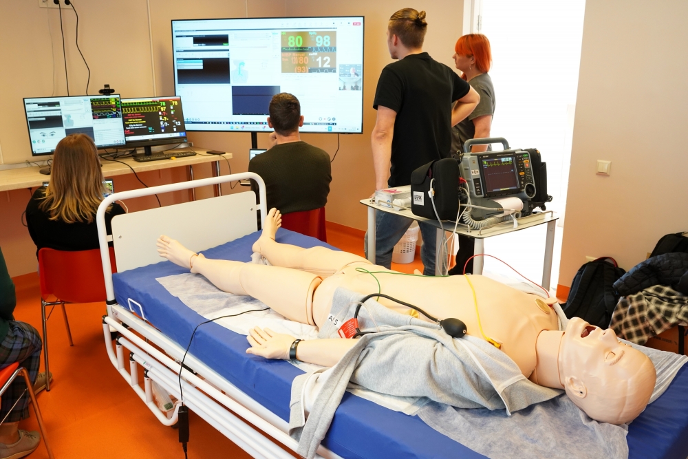 Simulāciju aprīkojums iegādāts Atveseļošanas un noturības mehānisma projekta “Veselības aprūpes prasmju apguve un pilnveidošana ar simulatoru palīdzību” ietvaros. Projekta mērķis ir izveidot Ziemeļkurzemes reģionālajā slimnīcā medicīnisko simulāciju infrastruktūru un attīstīt simulācijās balstītu pieeju ārstniecības personu tālākizglītībā, lai uzlabotu praktiskās iemaņas un veselības aprūpes pakalpojumu kvalitāti.