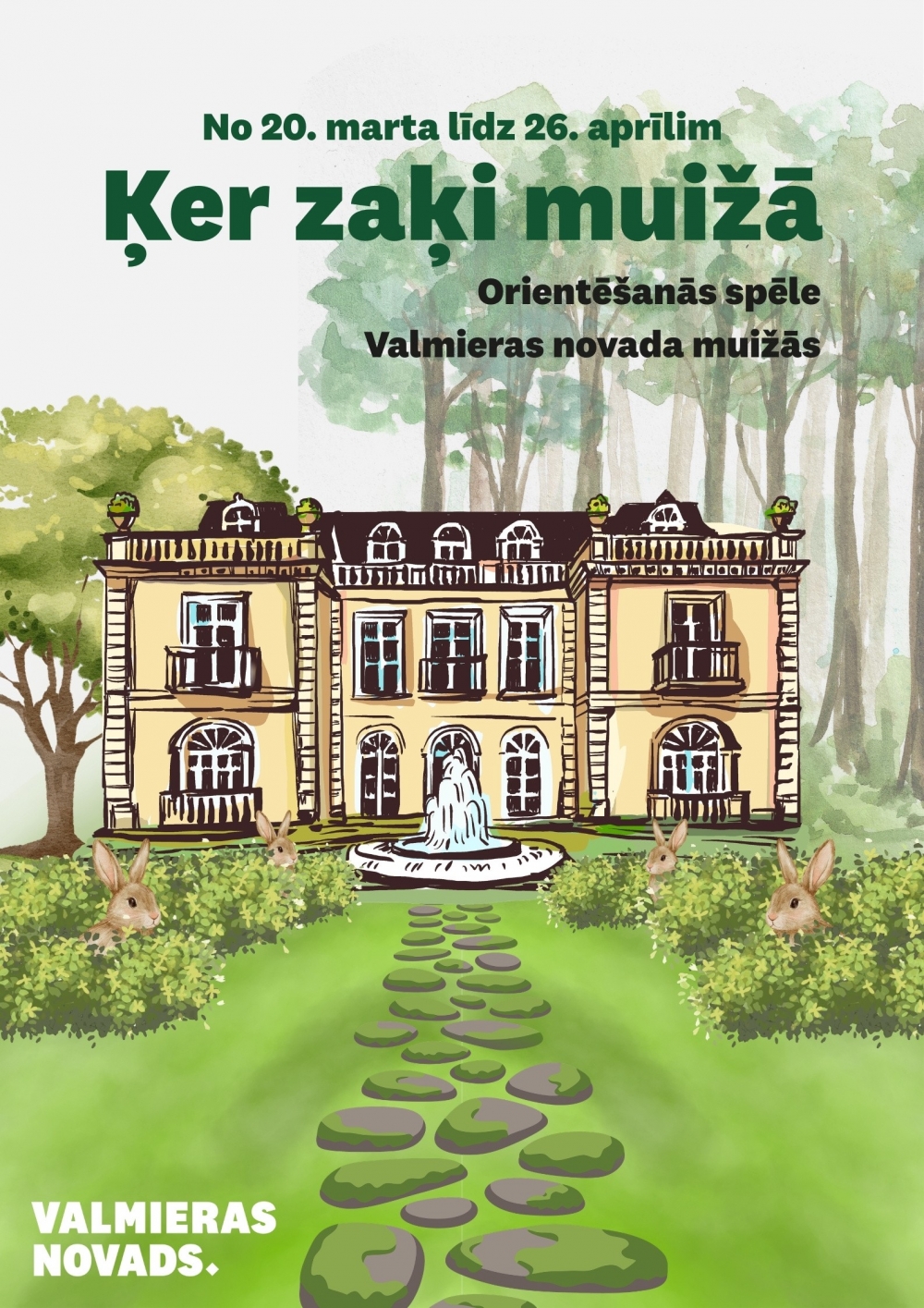 Spēles galvenais uzdevums ir atminēt Valmieras novada muižas, noķert zaķi jeb atrast dabā paslēptās norādes un atklāt muižu stāstus! Lai to paveiktu, dalībniekiem jāatšifrē darba lapā trūkstošie teksta fragmenti, kuros paslēptas norādes uz vairākām Valmieras novada muižām. Muižu apkārtnē būs izvietotas īpašas plāksnītes ar QR kodu. Dalībnieku uzdevums ir: