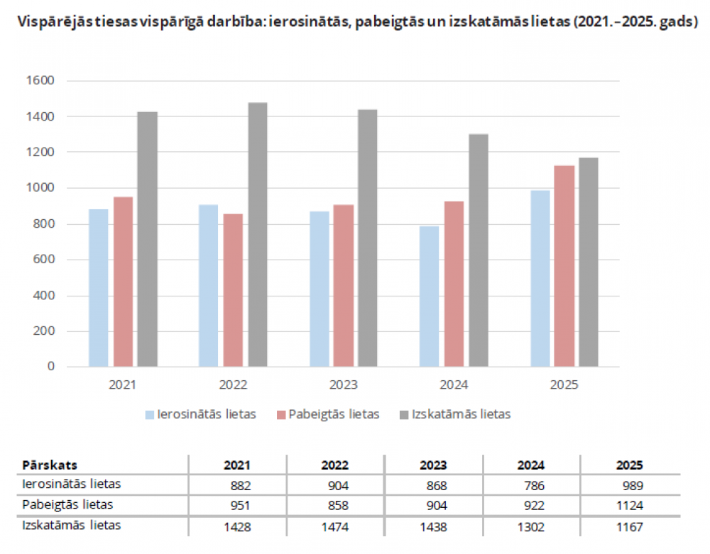 Neraugoties uz nepieredzēti lielo jaunu lietu pieplūdumu, Vispārējai tiesai tomēr izdevies samazināt neizskatīto lietu uzkrājumu līdz 1167 lietām – tas ir zemākais rādītājs kopš 2007. gada.