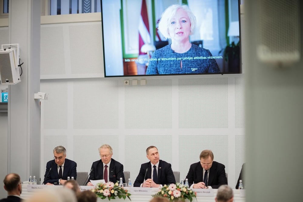 “Mērķiem jābūt ambicioziem, bet cilvēkiem – pirmajā vietā. Mēs nevaram vilcināties ar lēmumiem par Latvijas attīstības virzieniem – skaidri formulētas prioritātes ļauj attīstīties mērķtiecīgi,” videouzrunā dalībniekiem pauda Saeimas priekšsēdētāja, uzsverot stratēģiskas un ilgtermiņa plānošanas izšķirošo nozīmi. D.Mieriņa uzsvēra: “Mūsu valsts stratēģiskās attīstības procesam jākļūst par pamatu sociālajam un ekonomiskajam uzplaukumam.”