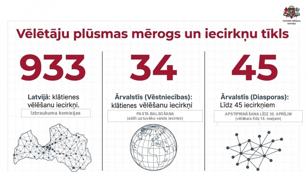2026. gada Saeimas vēlēšanām, kas notiks 3. oktobrī, Latvijā apstiprināti 933 klātienes vēlēšanu iecirkņi, kas ir par 15 mazāk nekā iepriekš. Tādā veidā tiek optimizēta resursu izmantošana, tā vietā piedāvājot citu, ērtāku risinājumu – lielāku skaitu izbraukuma iecirkņu vairākās pašvaldībās. Šogad iecirkņi būs izvietoti arī netradicionālās vietās, piemēram, Ropažu novadā – tirdzniecības centrā “Sāga”, Mārupes novadā - lidostā “Rīga”, slimnīcās un pat Rīgas Zooloģiskajā dārzā.