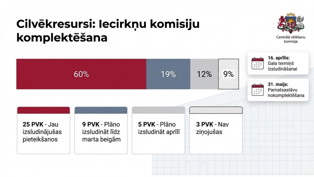 CVK īpašu uzmanību šogad pievērš savlaicīgai vēlēšanu iecirkņu komisiju izveidei. Lielākā daļa pašvaldību jau ir uzsākušas vai tuvākajā laikā uzsāks darbinieku atlasi, lai nodrošinātu pilnībā nokomplektētas un apmācītas komisijas līdz vēlēšanu periodam.