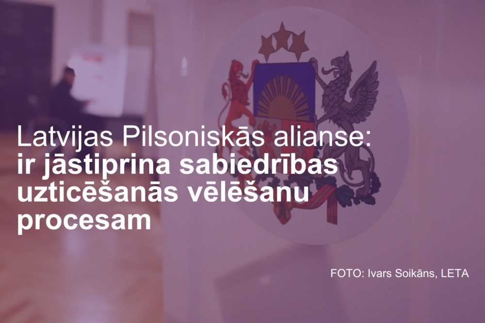 Pilsoniskā sabiedrība Latvijā ir uzticams partneris – sabiedrisko organizāciju augstais uzticēšanās līmenis ir resurss, kas jāizmanto demokrātijas stiprināšanai. Latvijas Pilsoniskā alianse ir gatava aktīvi iesaistīties sabiedrības informēšanā, vēlēšanu novērošanas stiprināšanā un sadarbībā ar valsts institūcijām, lai kopīgi nodrošinātu uzticamu un caurskatāmu vēlēšanu procesu.
