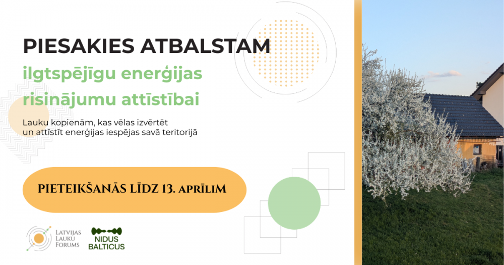 Lai uzzinātu vairāk un pieteiktos, aicinām sazināties ar LLF klimata un enerģētikas eksperti Ilviju Ašmani (tālrunis: +371 28367981, e-pasts: ilvija.asmane@laukuforums.lv).