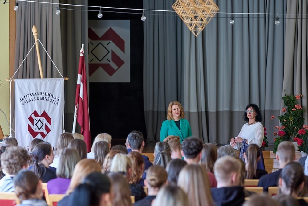 Ministru prezidente darba vizītes ietvaros ar Jelgavas Spīdolas Valsts ģimnāzijas jauniešiem diskutēja par Latvijas nozīmi Eiropā. Tāpat valdības vadītāja tikās ar Jelgavas valstspilsētas domes priekšsēdētāju Mārtiņu Daģi, domes priekšsēdētāja vietnieku sociālo lietu, veselības aizsardzības, kultūras, izglītības un sporta jautājumu programmā Aigaru Rubli un domes priekšsēdētāja vietnieku tautsaimniecības jautājumu programmā Mārtiņu Štālu.