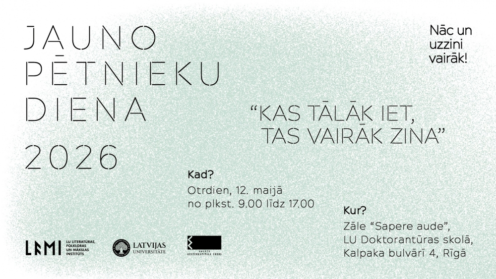 Konference norisināsies 12. maijā no plkst. 9.30 līdz 17.00, LU Doktorantūras skolas zālē “Sapere aude”, Kalpaka bulvārī 4, Rīgā.