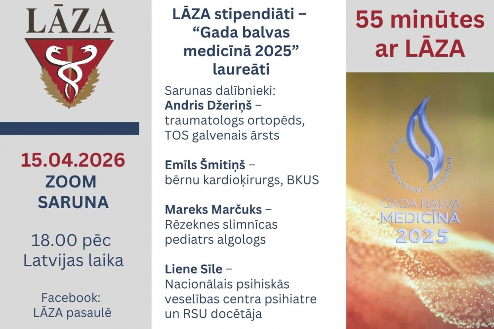 Sarunā 15. aprīlī, kas notiks 18.00 pēc Latvijas laika LĀZA Facebook vietnē, par savu ceļu medicīnā un arī ārpus tās stāstīs Rēzeknes slimnīcas pediatrs algologs Mareks Marčuks – “Gada ārsts speciālists 2025” nominācijas ieguvējs. 2019. gadā viņš saņēma Prof. Ilmāra Lazovska Medicīnas fonda stipendiju un ir arī Dr. Zaigas Alksnes-Phillips stipendijas laureāts.