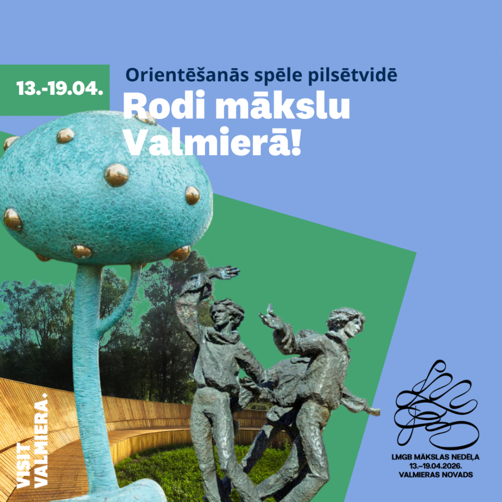 Mākslas baudītāji aicināti gan ielūkoties krāšņajā Mākslas nedēļas norišu programmā, kas pieejama www.valmierasnovads.lv, gan arī piedzīvot Valmieras vides mākslu īpašā tematiskā maršrutā, kas digitālā veidā pieejams https://ej.uz/valmieras_vides_māksla un kura laikā būs iespēja iepazīt nozīmīgākos Valmieras un tuvākās apkārtnes vides mākslas objektus vienkopus.