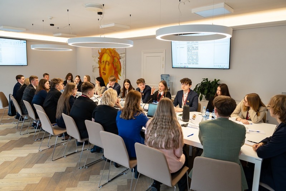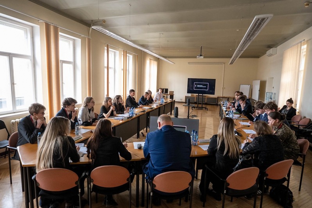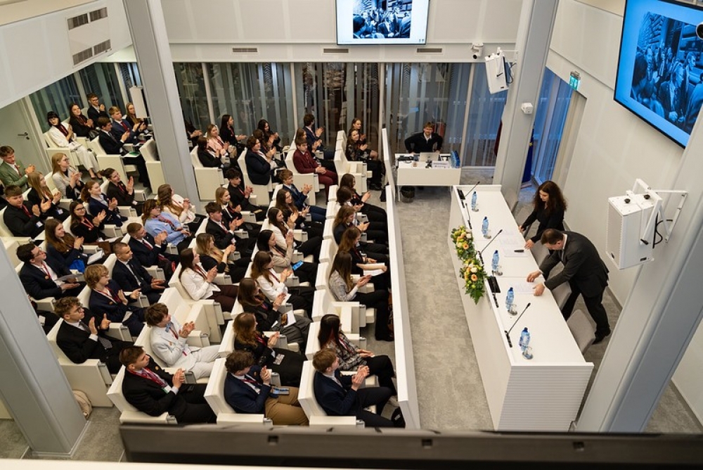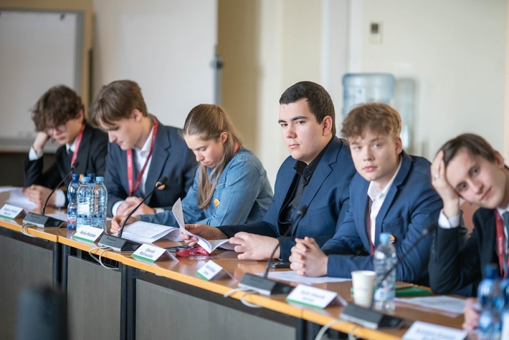 Jauniešu Saeimas pirmā diena sākās ar diskusiju “Sarunas par demokrātiju”, kurā jauniešus uzrunāja Latvijas Universitātes asociētais profesors, Augstākās tiesas tiesnesis Jānis Pleps un satura veidotāja Kristiāna Grāmatiņa, rosinot domāt par demokrātijas vērtībām un pilsoniskās līdzdalības nozīmi.