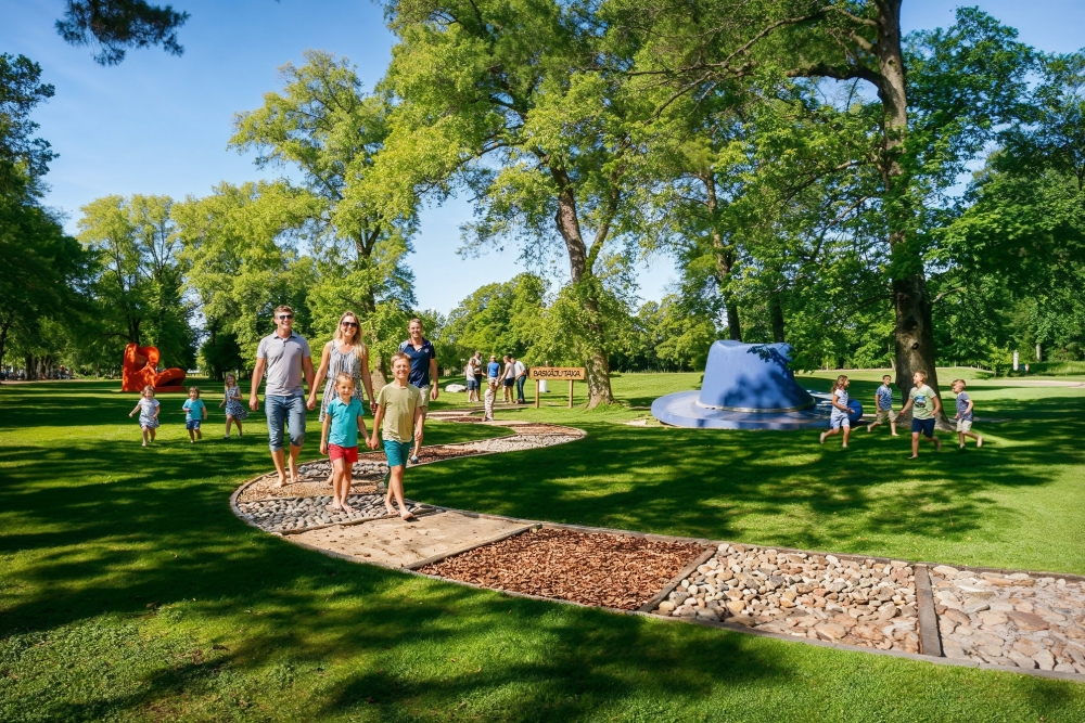 - aktīvās atpūtas un sporta infrastruktūra: āra trenažieru laukums, spēļu zonās, pastaigu taka un bērnu rotaļu iekārtas;