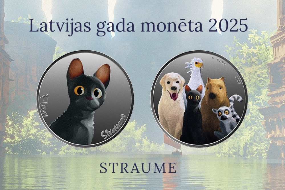Latvijas Bankas 2025. gada decembrī izlaistā kolekcijas monēta “Straume” ir īpaša ar to, ka tās grafisko dizainu filmas režisors Gints Zilbalodis un animācijas mākslinieks Pēteris Tenisons radījuši, strādājot tandēmā. Monētas vienā pusē attēlots leģendārais tumšpelēkais kaķis, otrā – pieci atšķirīgi, bet cits citam piekļāvušies draugi, kurus vieno neaizmirstama pieredze. Abām pusēm pa vidu – elpu aizraujoša odiseja, tās varoņiem vienā laivā glābjoties no plūdiem.