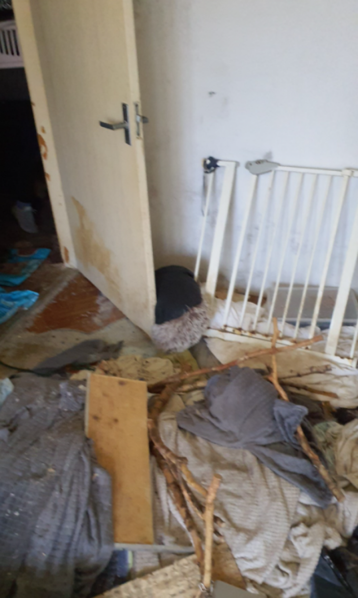 Ar tiesas lēmumu Pārtikas un veterinārā dienesta inspektoriem un likumsargiem iekļūstot dzīvoklī, tika konstatēta spēcīga dzīvnieku urīna un izkārnījumu smaka. Dzīvokļa grīda bija klāta ar dzīvnieku izkārnījumiem un urīnu. Dzīvoklī bija atslēgta elektrība un ūdens, nekur nebija trauku ar dzeramo ūdeni un barību dzīvniekiem. Visas dzīvokļa telpu grīdas bija klātas ar dzīvnieku izkārnījumiem, telpu stūros izkārnījumu kārta sasniedza pat desmit līdz piecpadsmit centimetrus, kas liecināja par ilgstošiem dzīvnieku labturības prasību pārkāpumiem.