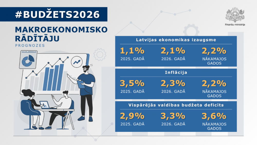 2026. gadā valsts budžeta ieņēmumiem plānots pieaugums par 944,6 miljoniem eiro, savukārt izdevumiem – par 804,3 miljoniem eiro.