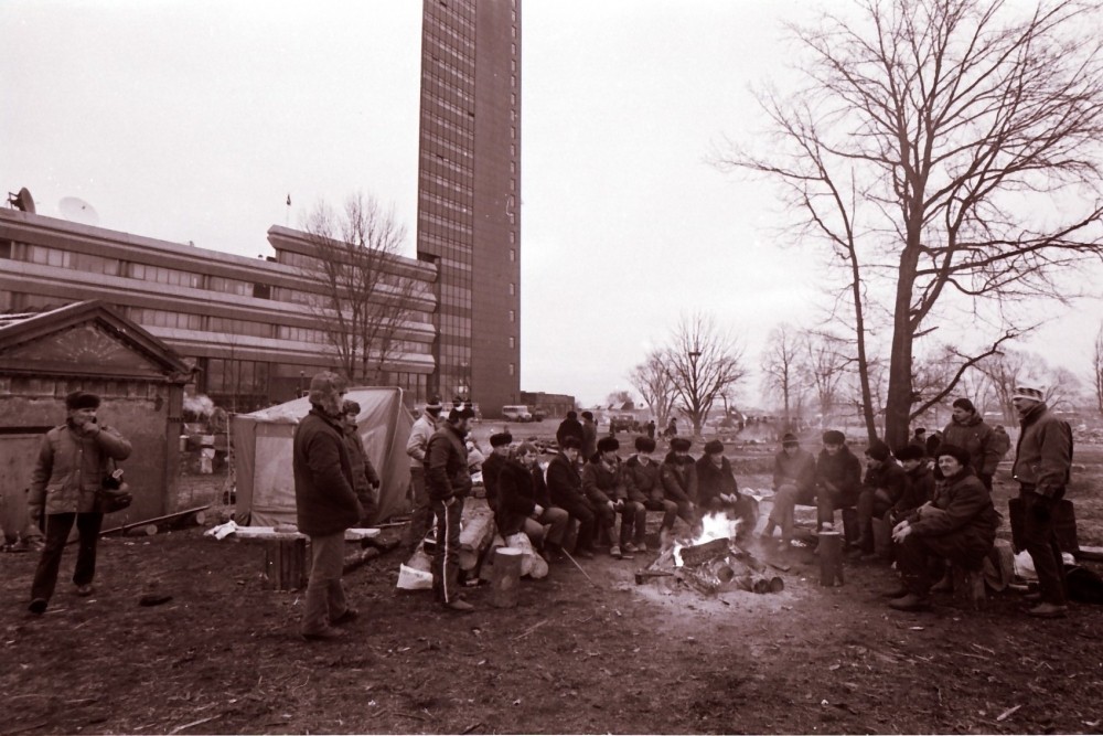 Barikādes pie Ministru padomes ēkas 1991. gada 14. janvārī.