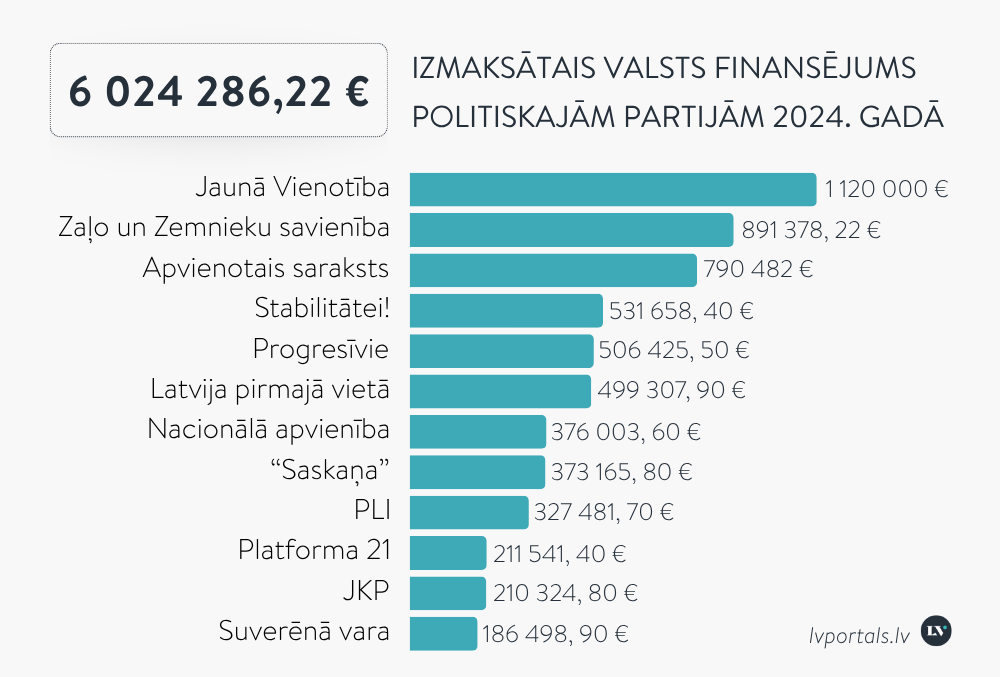 Valsts naudas apjoms, ko partijas saņem Latvijā, ir lielākais Baltijā.