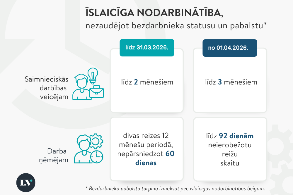 No 2026. gada 1. aprīļa īslaicīgas nodarbinātības periods tiek pagarināts līdz 92 dienām. Turklāt nodarbinātības reižu skaits vairs nebūs ierobežots.
