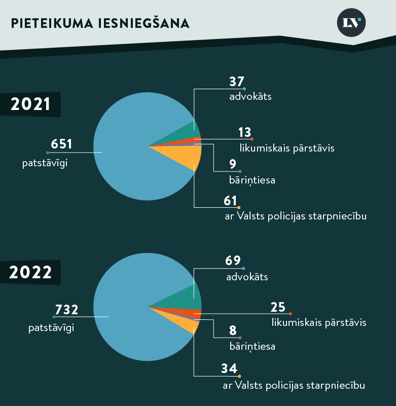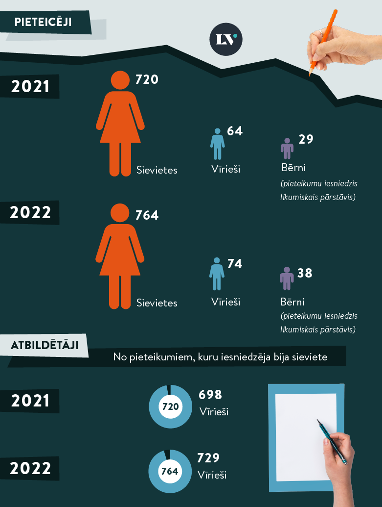 - Situācijās, kad pieteikumu iesniegusi sieviete, tas ticis apmierināts biežāk nekā situācijās, kad pieteikumu iesniedzis vīrietis.